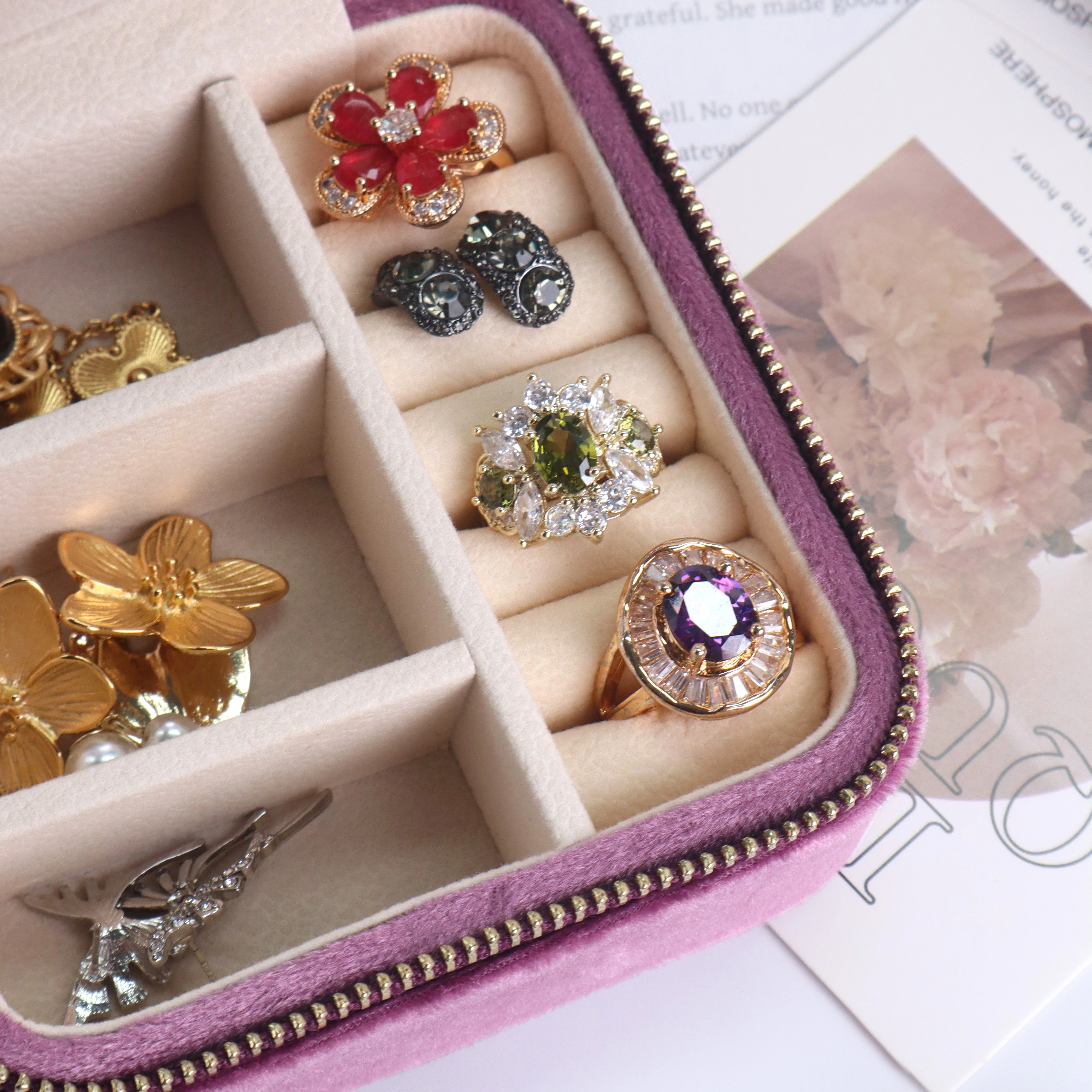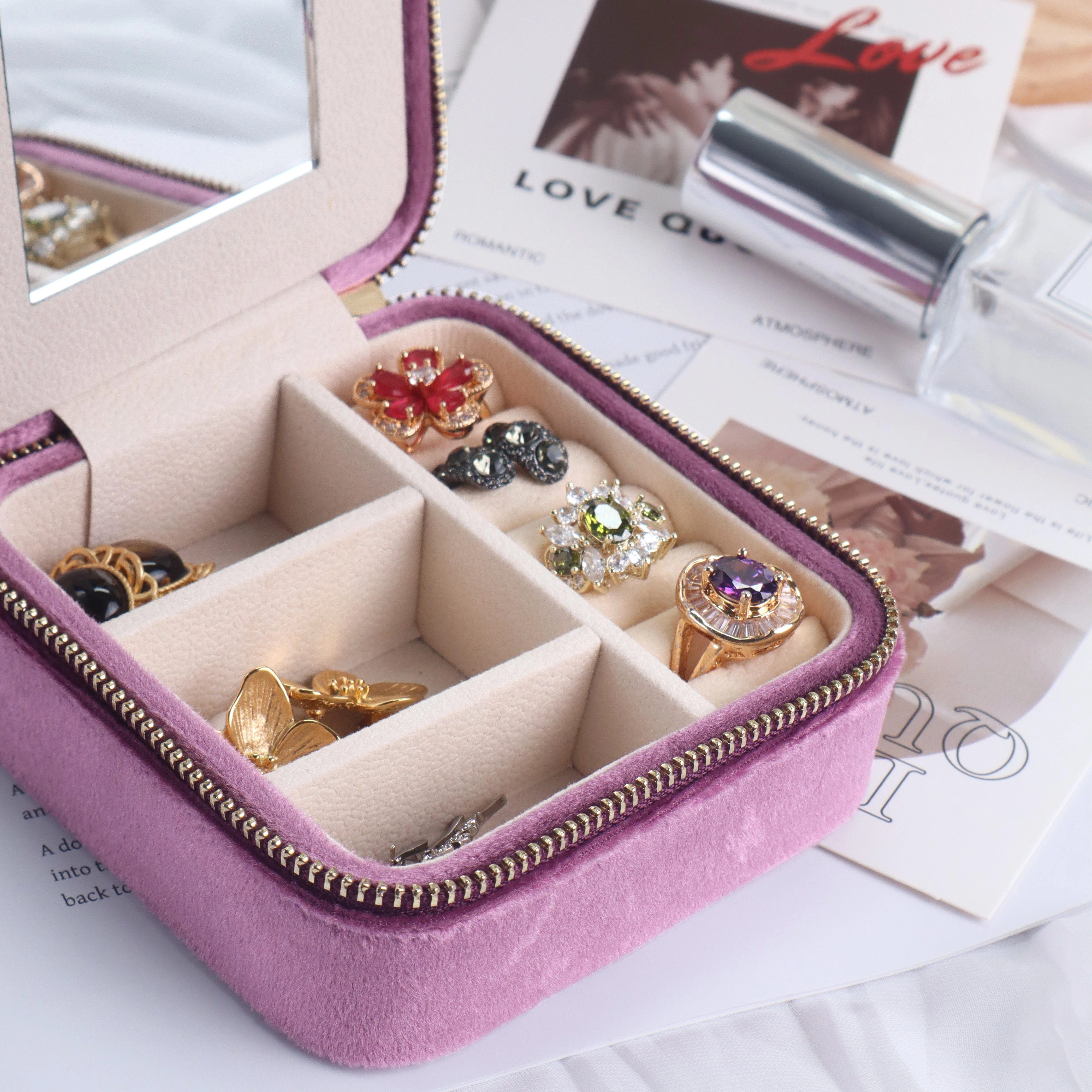 Luxe fluwelen reisetui met spiegel, sieradenorganizer, ideaal cadeau