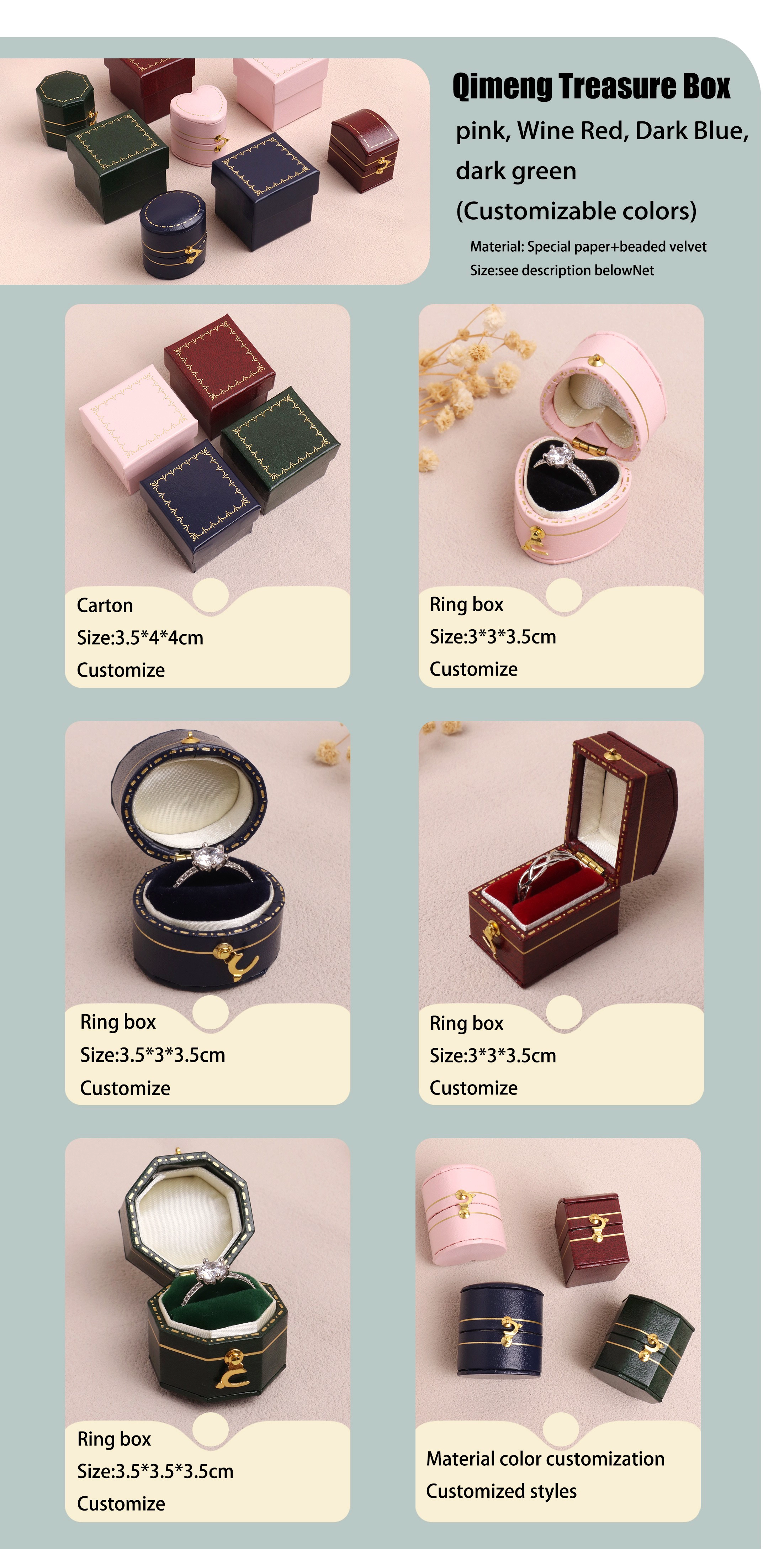 4. jewelry box --- paper box / plastic box / wooden box / velvet box