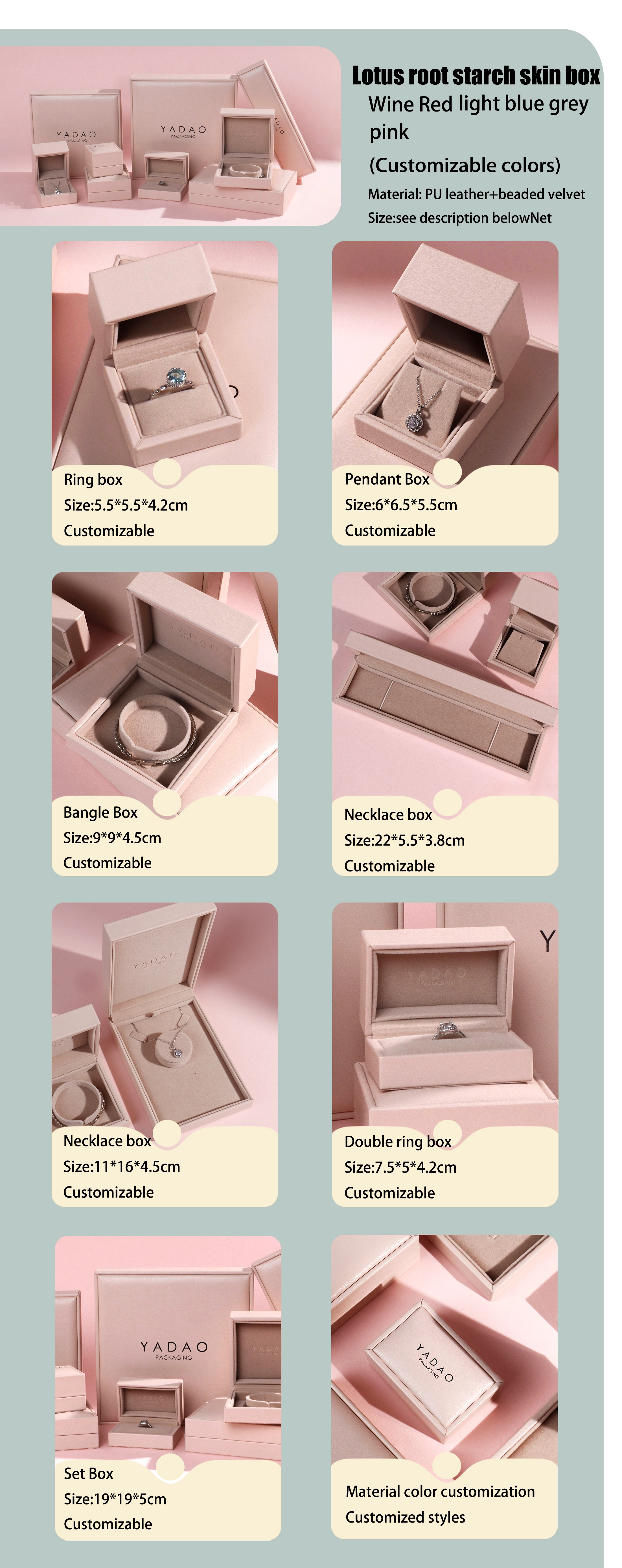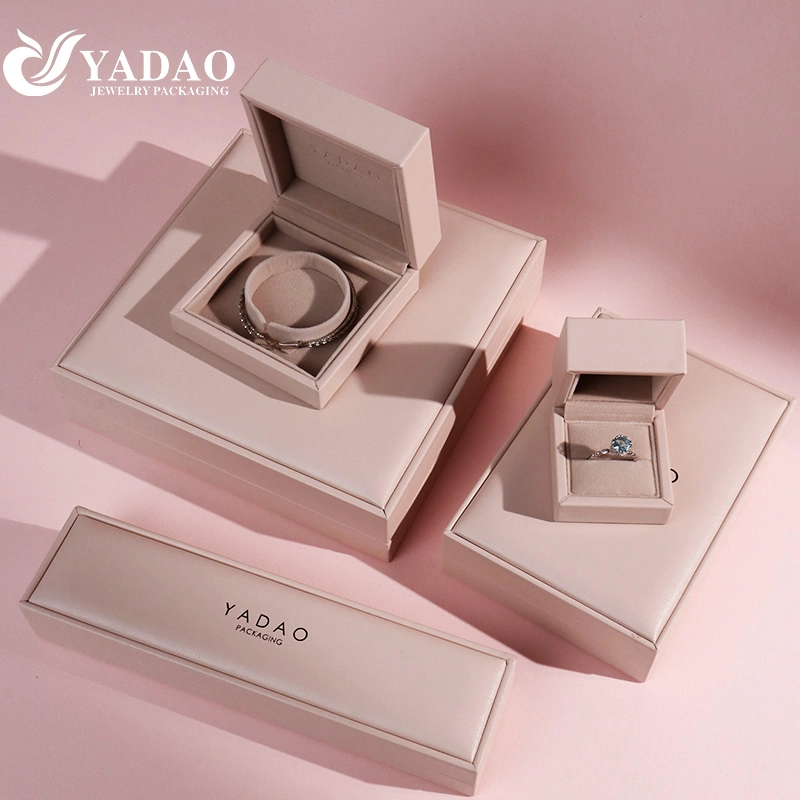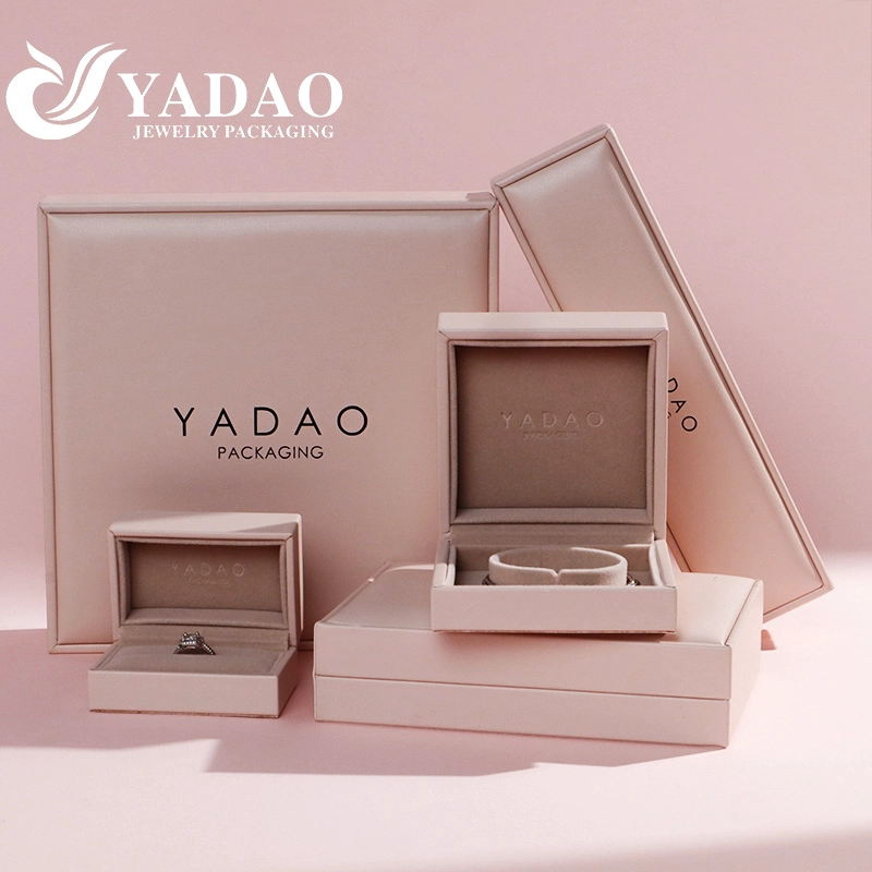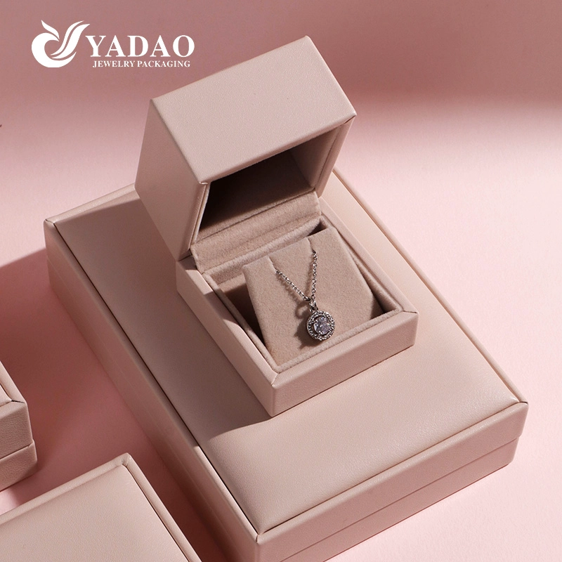 เครื่องประดับหนังสีชมพูเนื้อนุ่มบรรจุภัณฑ์กล่องตัวเลือกหลายขนาดต้นทุนที่แข่งขันได้